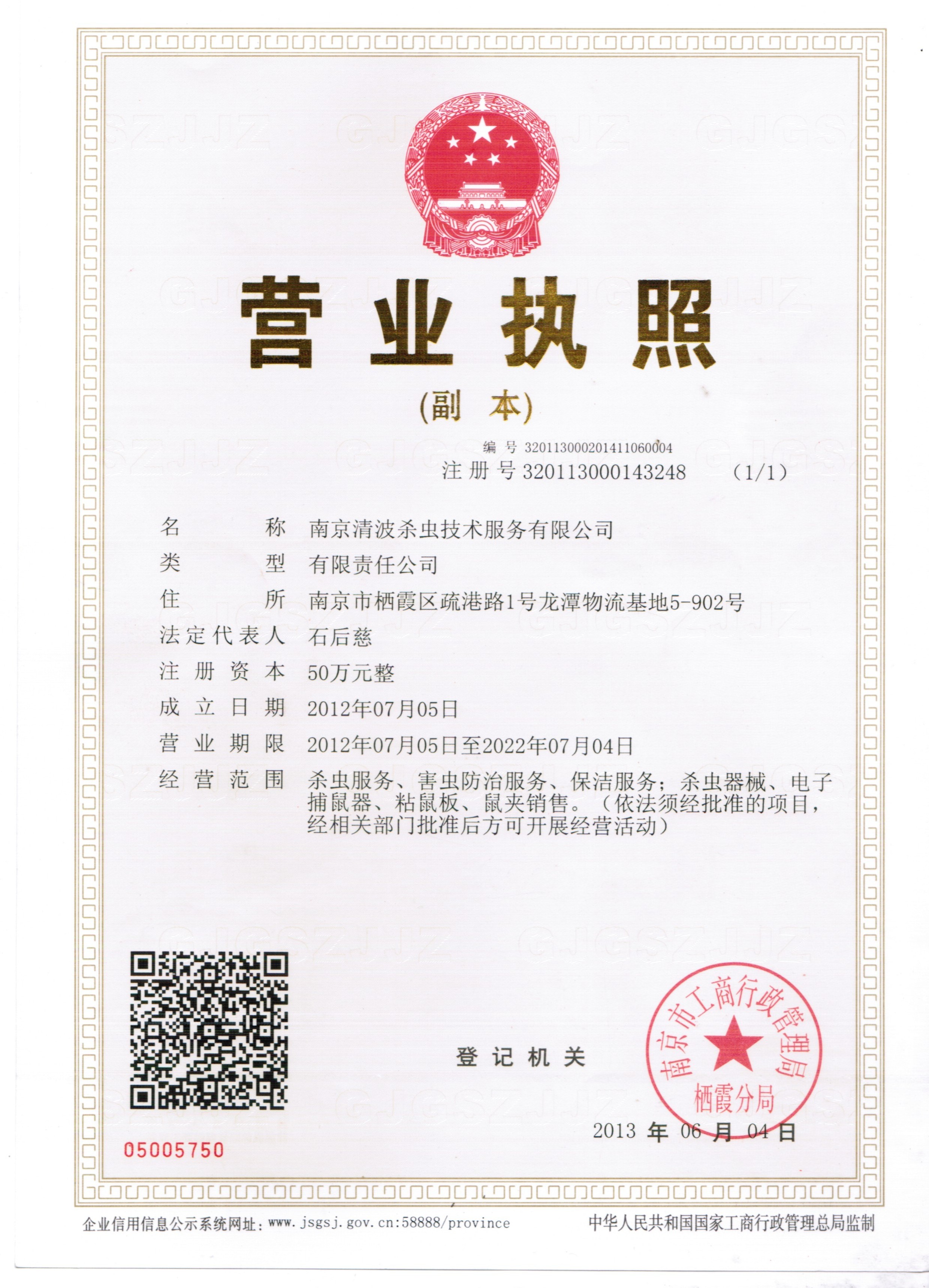 熱烈祝賀南京清波殺蟲技術(shù)服務(wù)